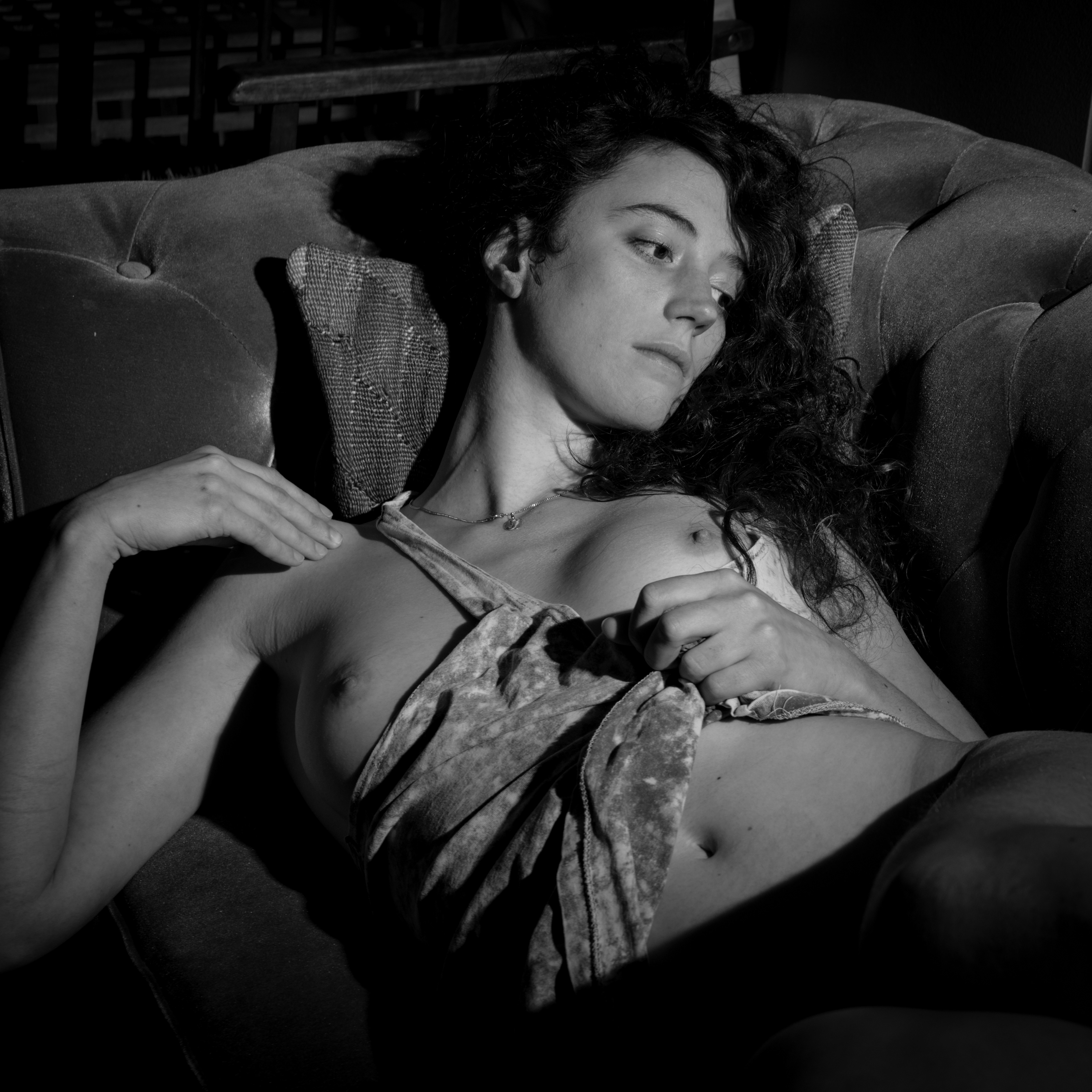 In sultry heat, past boughs sullen and still,